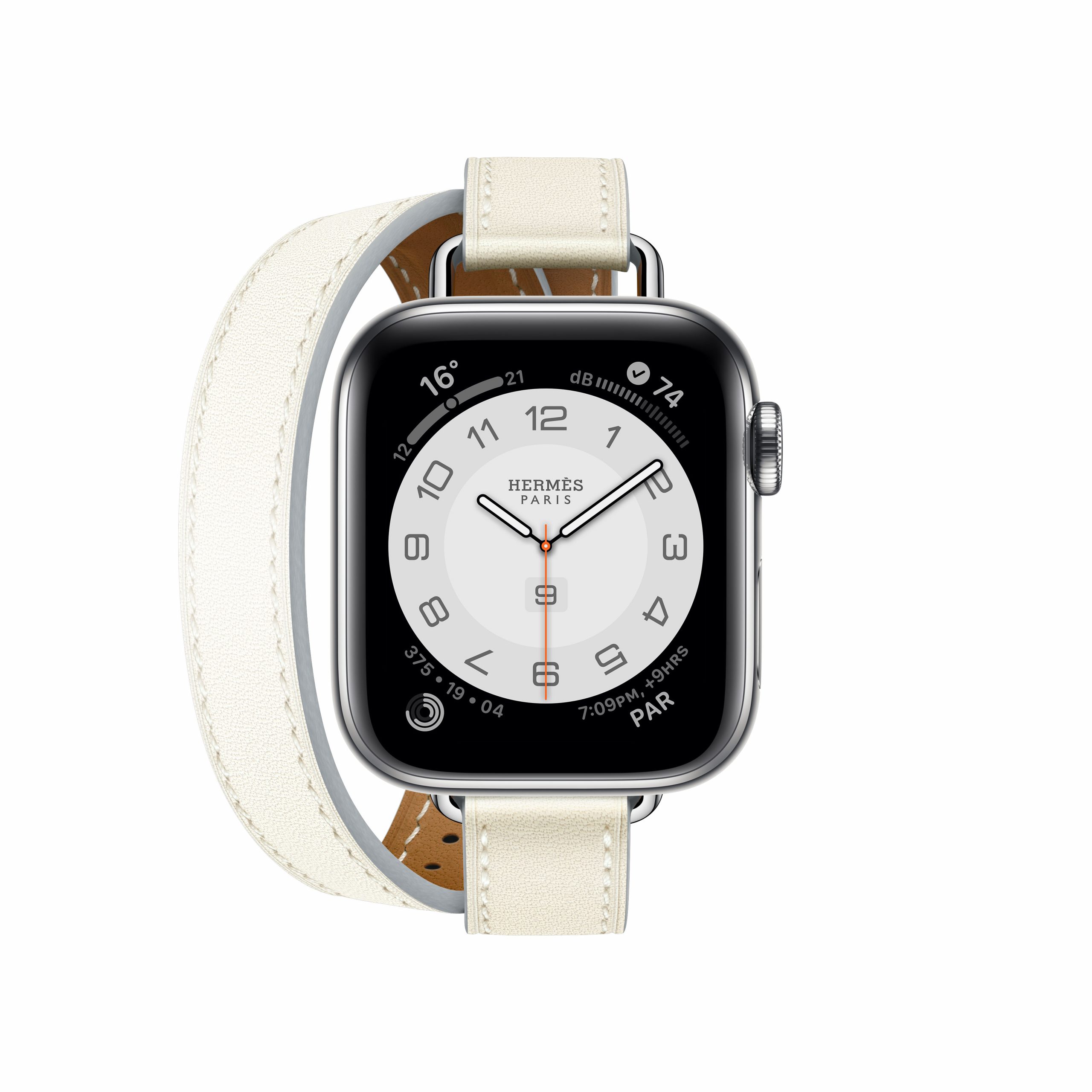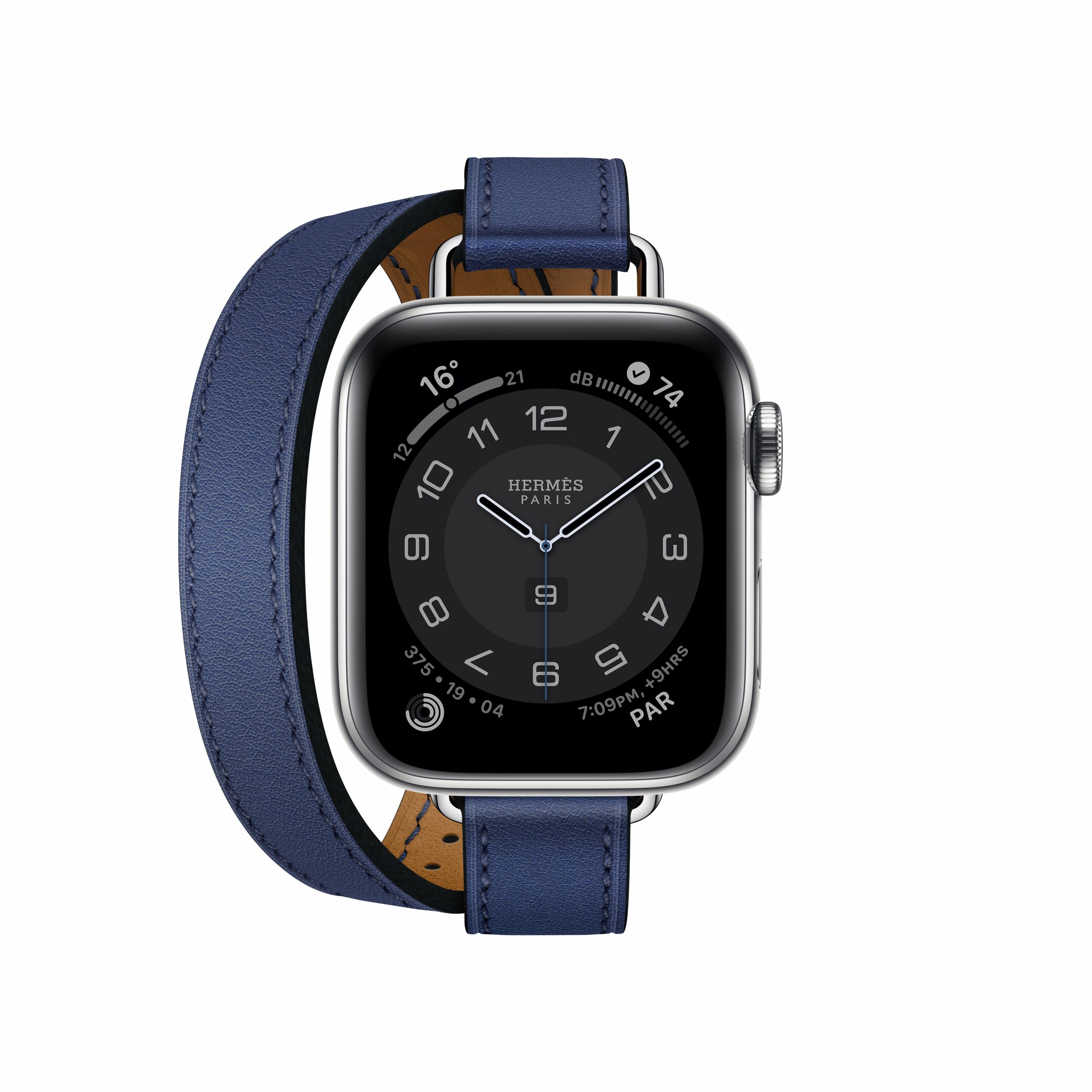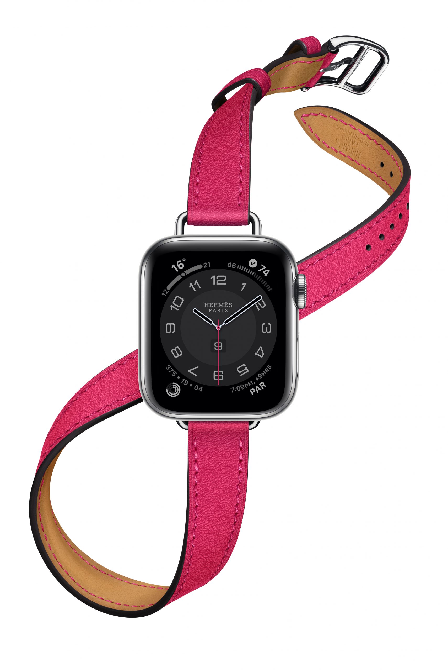 Meanwhile, the refined Attelage Apple Watch Hermès band asserts a bold colour palette with new double tour bands in Swift calfskin in vibrant Rose Mexico, Bleu Saphir and Blanc—as well as the classic Noir.