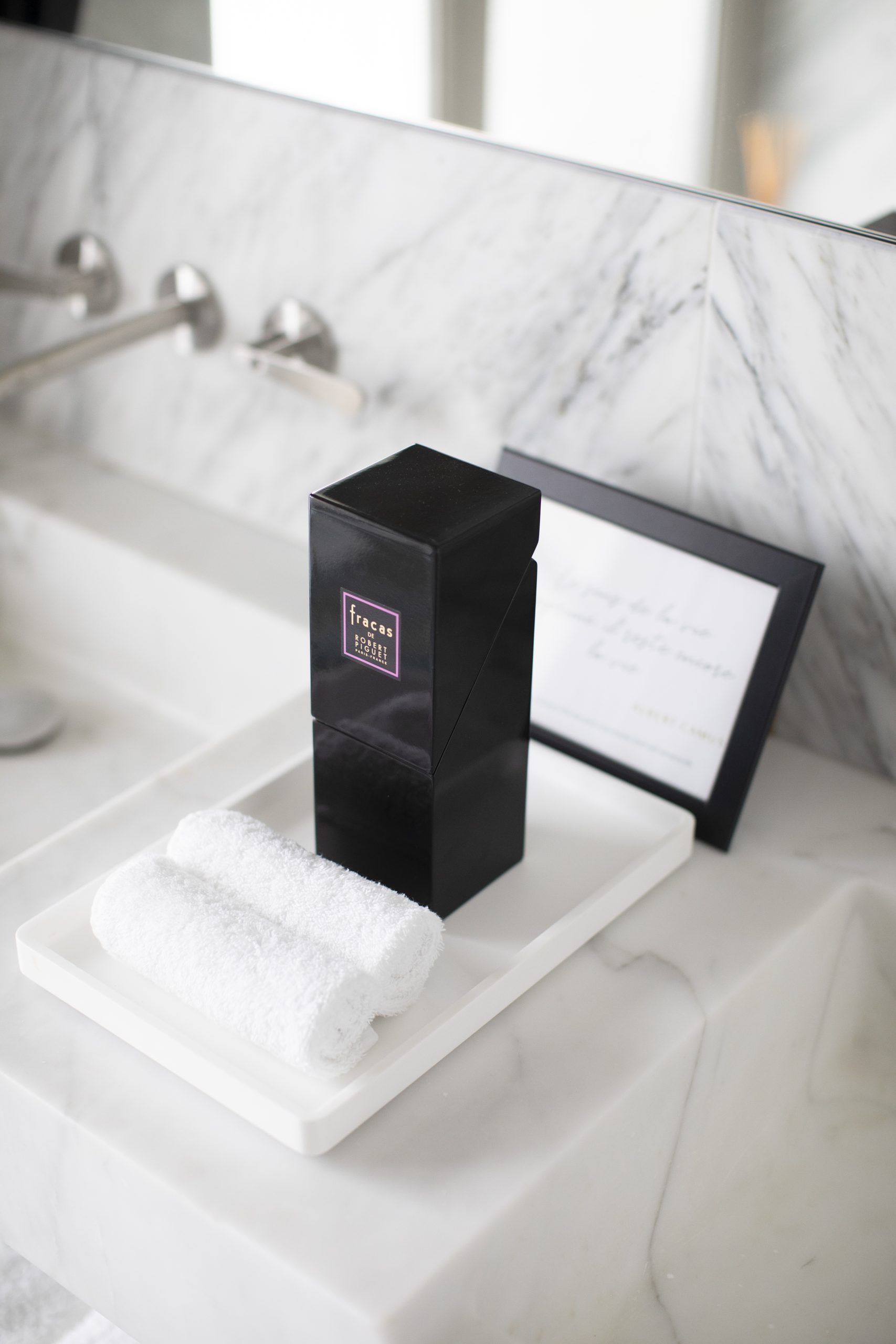 From the Dôme des Invalides to the Grand Palais… Paris is yours from the suite ! Like a Parisian apartment, it is inspired by the spirit of Couture, in small touches, infusing every detail of the place with dotted lines. With that extra soul specific to Isabelle Huppert’s style, between the rigor of the male wardrobe and French glamor.