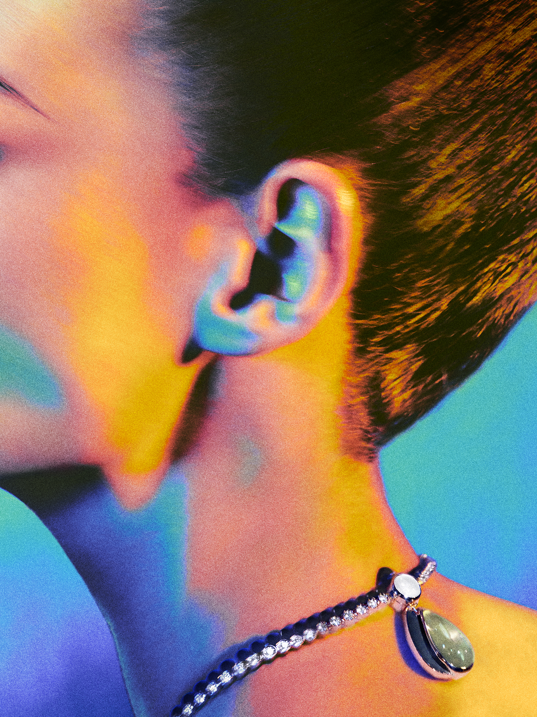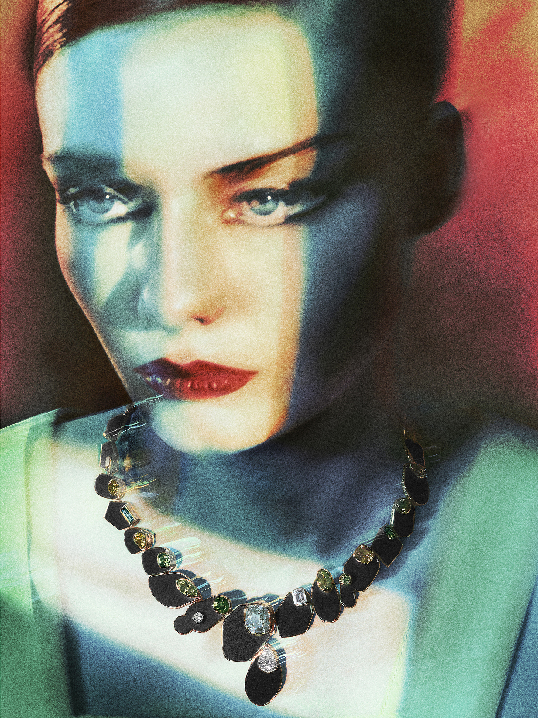 Throughout the collection, light and shadow interact dynamically. In the “Miroir d’ombre” necklace, the shadow detaches from the stones, creating a striking visual effect where the shadow is no longer bound to the gemstones but instead plays a subtle, yet compelling role in the overall design. This delicate interplay of elements produces pieces that are not just visually stunning but also rich in symbolism.