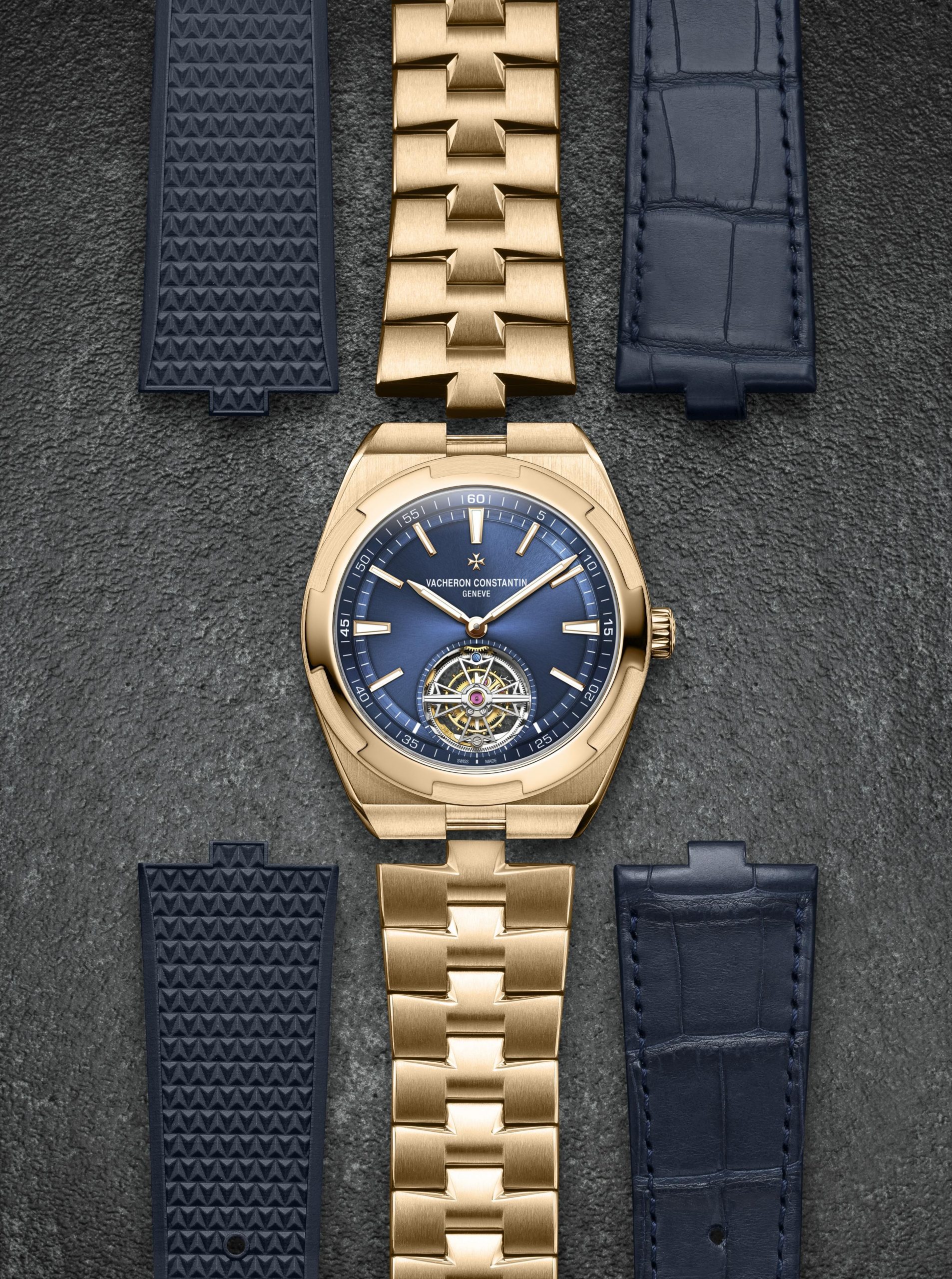 After a steel version in 2019, the Overseas tourbillon model now appears attired in 18K 5N pink gold. A tourbillon, a blue lacquered dial with a sunburst satin finish and an interchangeable bracelet/strap system accompany this material that is both refined and modern – two principles deeply cherished by the Maison.